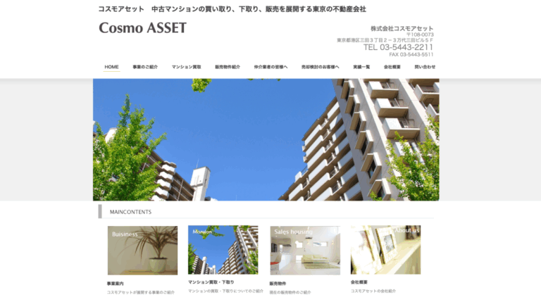 株式会社コスモアセットは、不動産の売買・賃貸・管理及び仲介、販売促進に関する情報・資料の収集・企画及び販売などを展開する不動産会社です。