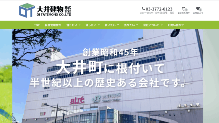 大井建物株式会社は、本社のある「大井町」駅周辺の物件を中心に、居住用不動産、投資用不動産、賃貸物件など幅広いニーズに対応した物件を取り扱っています。特に賃貸物件では、自社管理物件を紹介している点が特徴です。